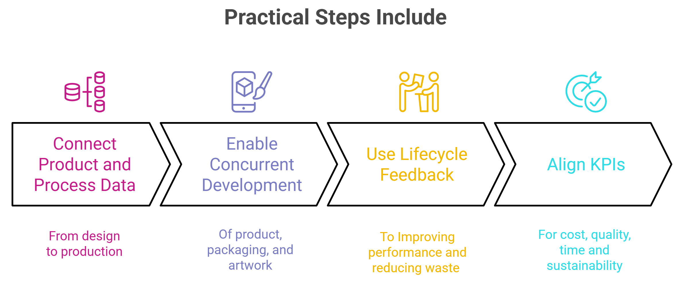 An integrated lifecycle approach connects product design, production planning and logistics early. This reduces late-stage surprises and supports faster, more reliable launches across multiple sites .