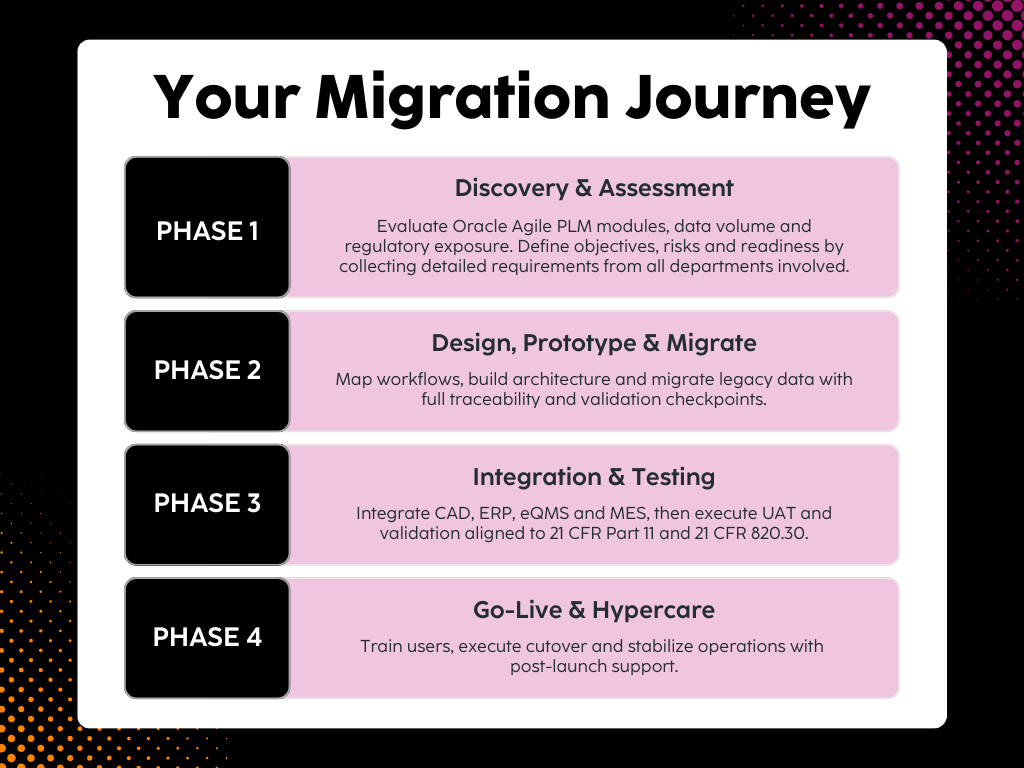 Oracle Agile PLM support ends in 2027. For regulated medical device organizations, continuing to rely on an aging PLM platform increases exposure across design controls, quality systems, audit readiness and data integrity.
