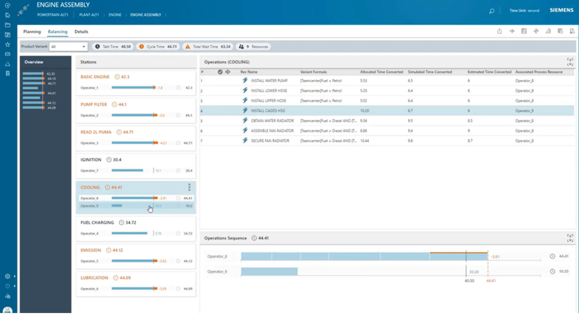 Advanced optimization tools support plant-level activities such as line balancing, cycle time analysis, and station-level walk path estimation. By analyzing production sequences and distinguishing value-added from non-value-added tasks, teams can improve assembly productivity and validate “what-if” scenarios before execution.