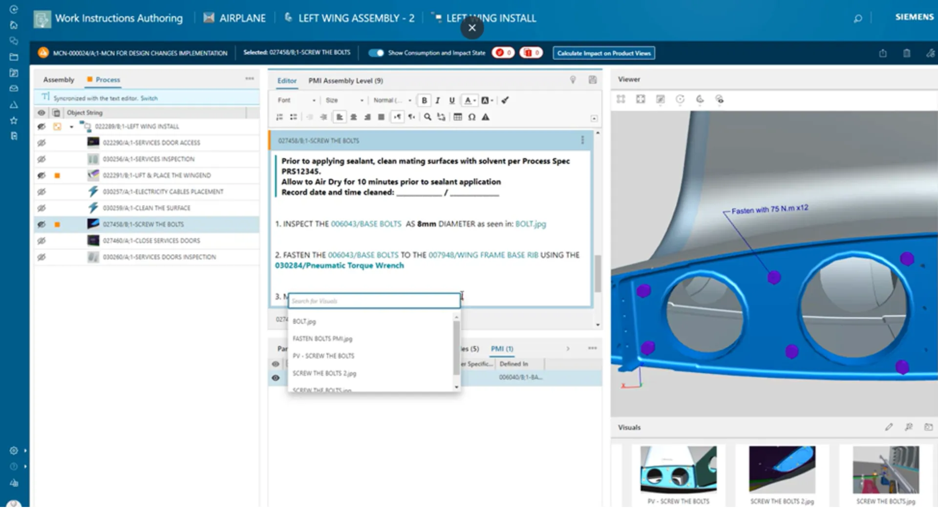 For organizations without an MES such as Siemens Opcenter, Teamcenter Easy Plan delivers Electronic Work Instructions (EWI) directly to the shop floor.