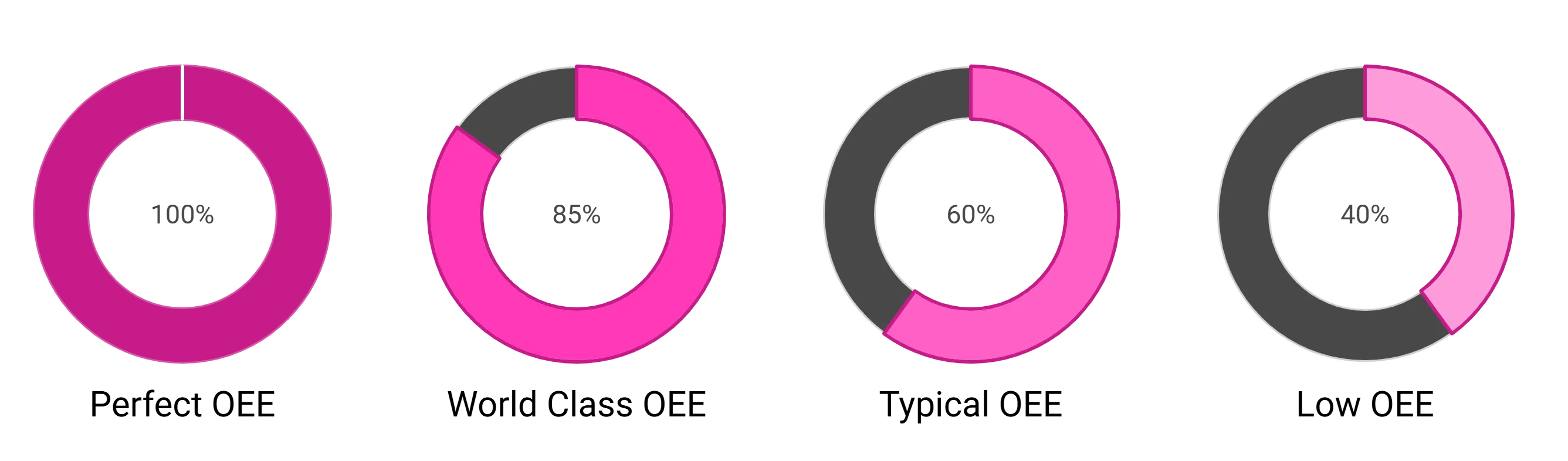 OEE is a powerful performance indicator in manufacturing that, when used correctly, can unlock the hidden potential of the factory floor. Worldwide, the accepted estimate for the average OEE level is between 40% and 60%. Highly efficient factories strive for a world-class OEE rating of 85%. The only way to reach that best-in-class rating is through process improvement, digital solutions and the right expertise to implement and integrate them successfully.